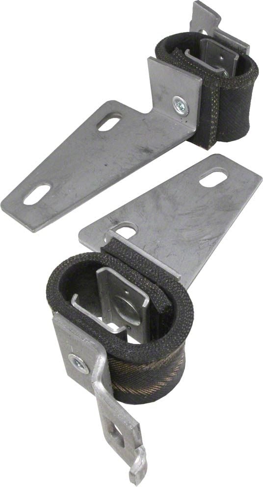 Construction and Appearance. Constructed from raw metal, these muffler hangers are built to stock specifications using modern manufacturing techniques. This ensures they provide the same level of durability and support as the original parts. The raw metal finish offers a straightforward, utilitarian look, while the high-quality construction guarantees long-lasting reliability, even in the harsh conditions of the exhaust system.