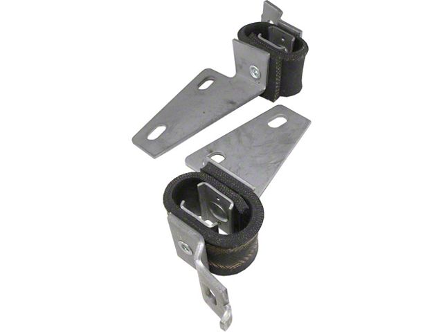 Reliable Exhaust Support. These Muffler Hangers are essential components designed to securely support the rear muffler in your 1973 Corvette C3. Crafted as reproduction parts, they replicate the original hangers in function and appearance, ensuring a perfect fit and dependable performance. As direct replacements, they help maintain the exhaust system's stability and alignment, preventing undue strain and wear.