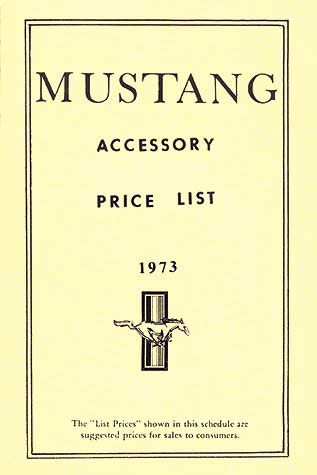 1973 Mustang New Car Accessory Price List