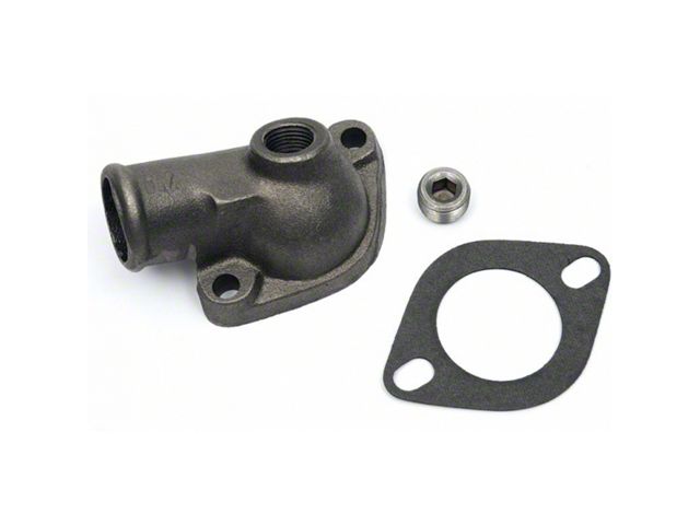 Your 1974, 1975, 1976, 1977 GM thermostat housing has a very important job in your engines coolant cycle. The GM thermostat housing is home to where your thermostat lives and aids in its restriction of the coolant flow back to the radiator. Hence the name ???housing???, over time these steel, aluminum or chrome housing can corrode due to rust or electrolysis or simply warp during the heat and cooling cycle. GM thermostat housing can leak at the gasket, hose, clamps or fasteners. Other times, the thermostat housing just get rough or rusty and just wouldn???t do at the next show n??? shine or drive in. The El Camino Store sources its 1974, 1975, 1976, 1977 Chevy thermostat housing from the world???s top manufactures to insure many miles of cruising pleas