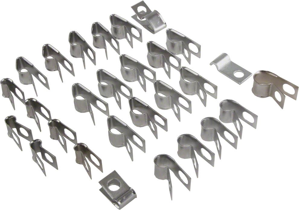 Comprehensive Brake and Fuel Line Clip Kit. The Brake and Fuel Line Clip Kit is designed for 1974-1982 Corvette C1 models, providing a complete set of clips for securing brake and fuel lines. Featuring a raw metal finish, this reproduction part is OE comparable and compatible, ensuring it meets original equipment standards for quality and fit. The kit comes as a 28-piece set, offering all the necessary components for a full replacement.