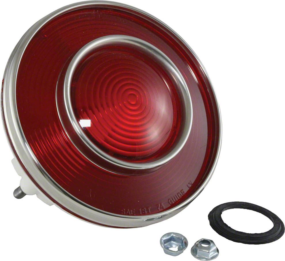Show Quality Taillight Assembly. The Taillight Assembly is designed for 1974 Corvette C3 models, providing a high-quality replacement for your vehicle's rear lighting system. Featuring a polished chrome finish with a racing red finish lens, this taillight assembly enhances both the functionality and aesthetic appeal of your Corvette. As an officially licensed GM restoration part, it guarantees authenticity and top-notch quality.