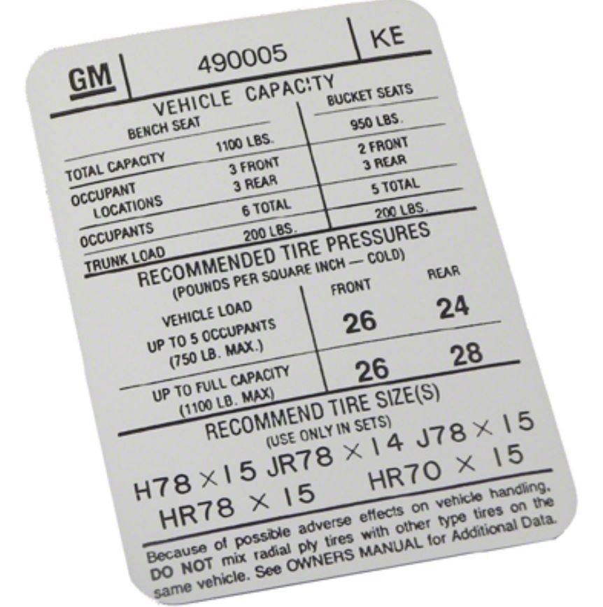 1974 Pontiac Full Size Door Jamb Tire Pressure Decal