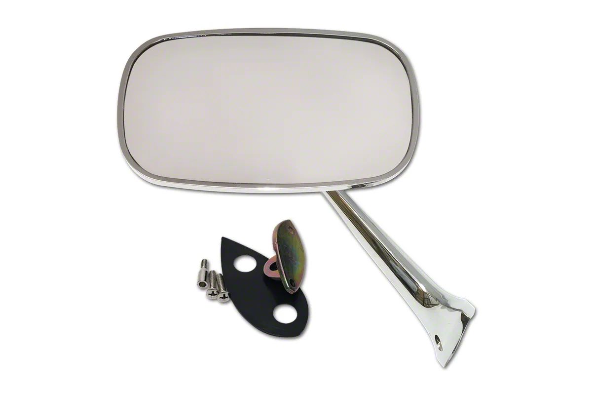 Driver Side Outside Mirror with Mounting Kit. This CA Outside Mirror with Mounting Kit is designed for the driver side of your Corvette, providing a sleek and functional replacement that matches the original design. Manufactured from premium-grade quality material, it ensures a perfect fit and long-lasting durability, serving as a direct bolt-on restoration component.