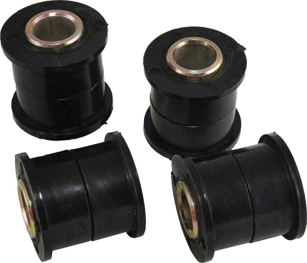 The benefit of our split style strut rod bushings is self-centering installation. Rubber bushings frequently are installed off-center, thereby causing alignment and installation problems. Split style bushings can also be installed at home with a large vise. The bushings are made of polyurethane with a steel sleeve to improve ride and rear camber control.