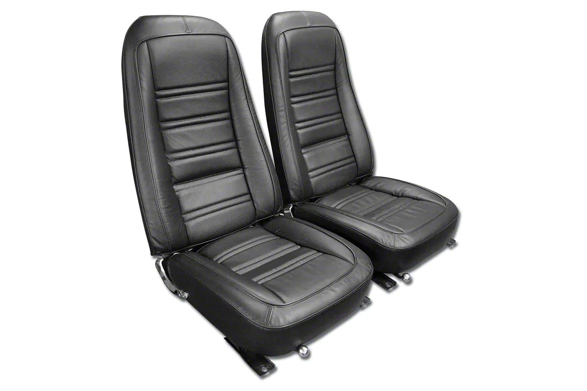 Luxurious Restoration. The Corvette Seat Covers Driver Leather Black with All Leather Construction is designed to bring back the original luxury and comfort of your vehicle's interior. Tailored with precision according to OE-gauge specifications, these seat covers provide a perfect fit, helping to restore your Corvette's mint condition.