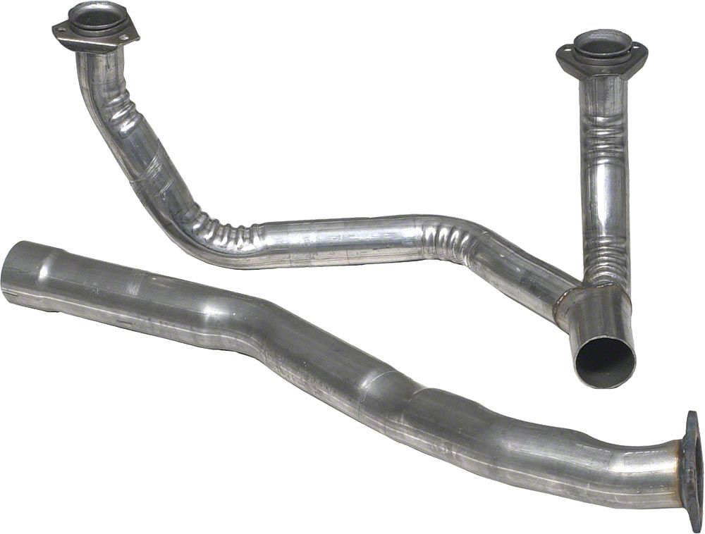 Construction and Appearance. Featuring high-quality aluminized carbon steel construction, this Y Pipe is bent to stock specifications, ensuring a perfect fit and reliable performance. It is specifically compatible with 1976 non-smog pump models, maintaining the original design and functionality of your Corvette's exhaust system.