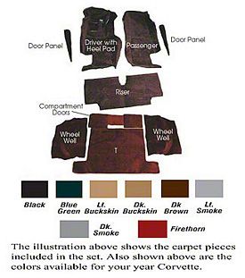 Durable and Fade-Resistant. Crafted from durable cut-pile material, this carpet set is built to withstand daily use while resisting fading and stains. The precision cut ensures a seamless fit, while the matching heel pad provides added protection where it’s needed most. This carpet set not only enhances the aesthetics of your Corvette’s interior but also improves comfort and sound insulation.