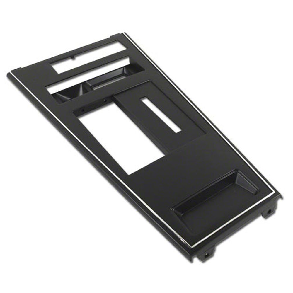 Reliable Shifter Console Trim Plate. The Shifter Console Trim Plate is designed for 1977-1982 Corvette C1 models without power windows, offering a high-quality replacement for your vehicle's interior. Featuring a matte black finish, this trim plate covers the automatic lens opening, ensuring a clean and seamless look. Built to stock specifications using modern techniques, it guarantees durability and a precise fit.