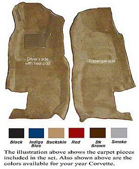 Carpet and jute padding are press molded at the same time, providing accurate contours for a perfect fit. All sets are made with the correct molded heel, pad, dimmer switch and vinyl edge bindings.