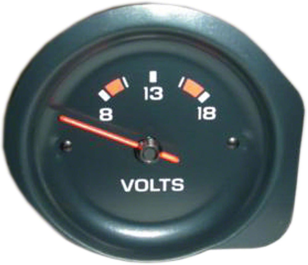 Authentic Reproduction Voltmeter Gauge. The Voltmeter Gauge is a high-quality reproduction part designed to restore the original look and function of your Corvette's dashboard. With a matte black finish face, racing red needle, and clean white finish notations, this gauge replicates the factory appearance, ensuring an authentic restoration of your vehicle's interior.