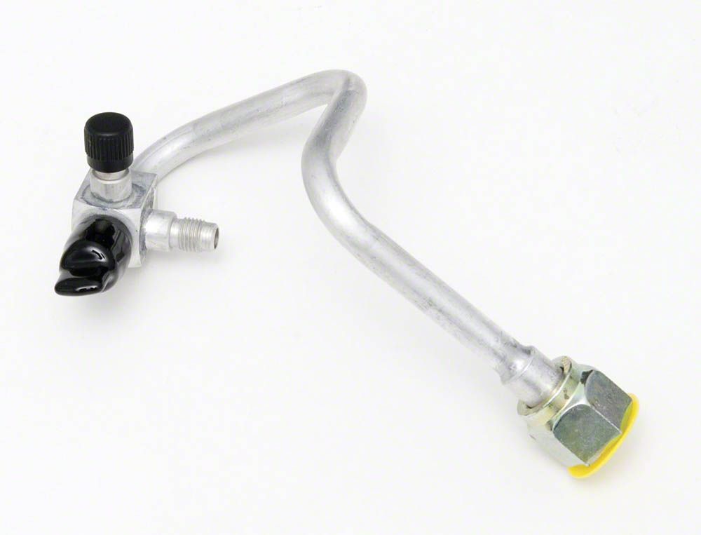This Corvette reproduction air conditioning service port block to orifice inlet line has been manufactured to original factory specifications using today's modern manufacturing techniques. You will find the fit, finish and function will work superbly for your restoration. In addition, using a reproduction air conditioning service port block to orifice inlet line from Eckler's will add authenticity and value to your Corvette.