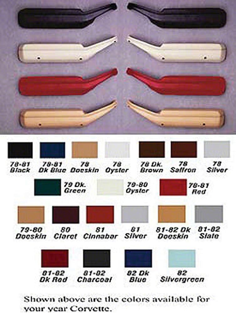 Application. These reproduction armrests come in pairs and are specifically designed to fit 1978-1982 Chevrolet Corvette C3 models. They offer an excellent solution for restoring the factory appearance and comfort of your vehicle's interior.