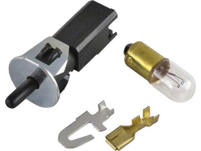 Construction and Appearance. This glove box light switch is constructed with a combination of raw metal and matte black finishes, providing a durable and visually appealing component. Built to stock specifications, it matches the original design and functionality of your Corvette, ensuring a seamless fit and reliable performance. The included terminals and bulb ensure that the switch is ready for immediate installation.