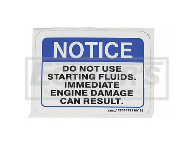 Engine Compartment Decal, Starting Fluid Warning, NOS Original GM (78-80 Malibu)