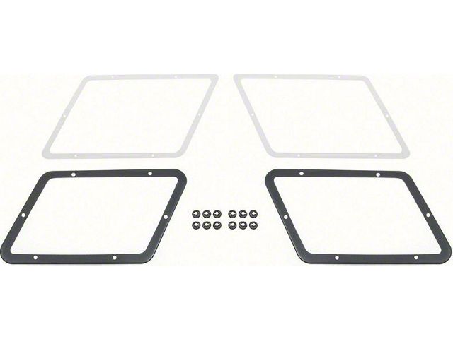 Reproduction of the mounting hardware that is required to mount the fender air extractors (louvers) on 1978-79 Camaro Z28 models. Set includes two outer perimeter metal mounting brackets, two plastic poly gaskets, and 12 speed nuts.