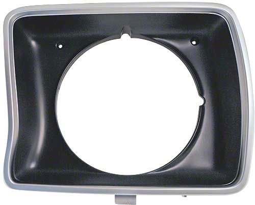 Ford Pickup Truck Headlight Door - Argent & Black - Round He,adlights - Left - F100 Thru F350 1978-1979 Ford F100-F350 Truck headlamp bezel is a correct replacement for the scratched or dented original round trim ring.