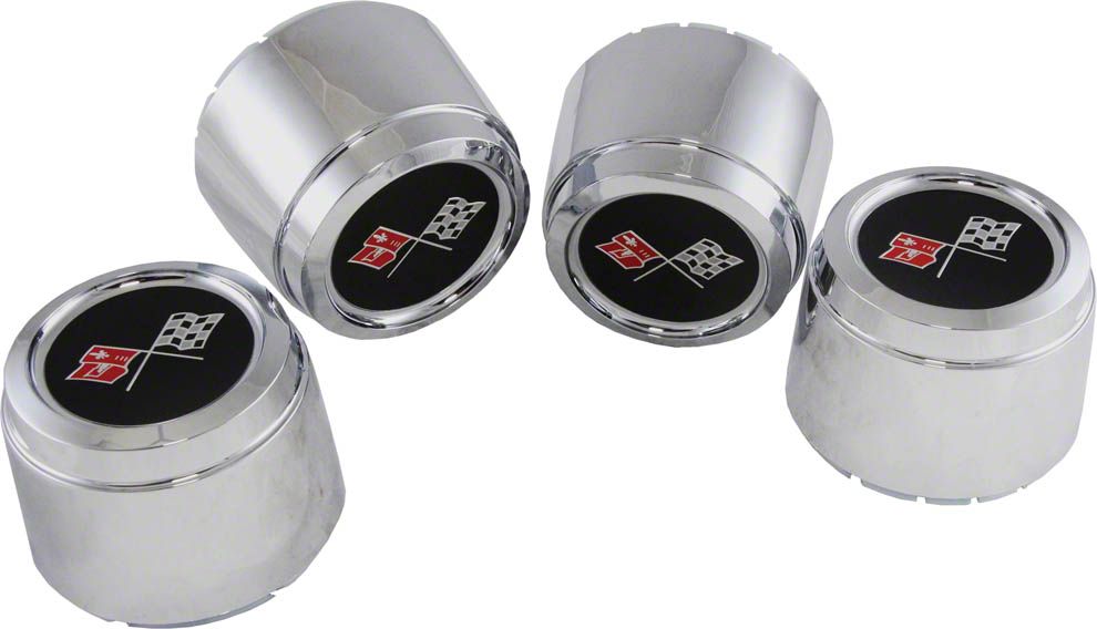Chevrolet Cross-Flags Wheel Center Caps. This PC Wheel Center Cap Set is designed for Chevrolet Corvette models, providing a stylish and functional upgrade. It features the iconic Chevrolet Cross-Flags logo, making it compatible with pace cars and those equipped with aluminum wheels, adhering to original factory specifications for a reliable OEM-quality replacement.