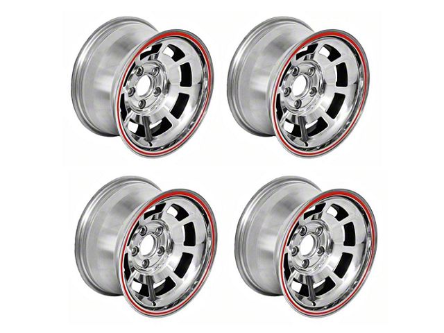 C3 Corvettes came with factory steel wheels from 1968-1982. Aluminum wheels were optional from 1976-1982. This one was factory on 1978 Indy Pace Cars only. Over time, your factory 15"x8" Corvette wheels are subject to wear and tear from curbs, driving, and the elements. As a result, your clear coat can discolor, stain, flake off and your wheels can become scratched and pitted. You could have them professionally refinished but doing it right is expensive and takes a lot of down time. In reality, refinishing them can easily cost you more than buying a new set. The solution is to start fresh with Eckler's high quality 15"x8" reproduction wheel set. This 15"x8" wheel set is constructed of one piece cast aluminum and features a polished finish with a red stripe. Like the factory wheel, this