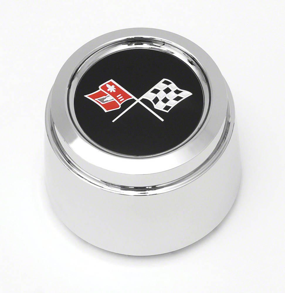 Chrome Wheel Center Cap with Emblem. This Wheel Center Cap features the iconic Chevrolet Cross-Flags logo, making it a perfect accent for cars with aluminum wheels. Designed for compatibility with Pace Car, Sports, or Coupes, this product is an official GM Restoration Part, ensuring it follows original factory specifications and offers a reliable OEM-quality replacement.