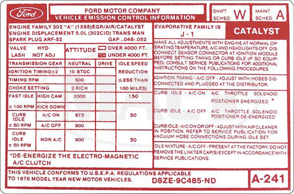 Emissions Decal, 302 V8 (1978 Ford Thunderbird)Find parts that fit my vehicle
