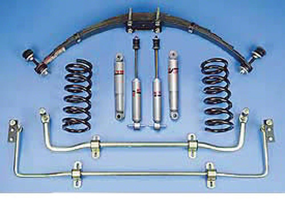 This specially designed package improves both ride and handling at a very affordable price. Balanced anti-sway bars assure flat, neutral steering. New springs restore ride height and lifetime gas shocks smooth and control the car.