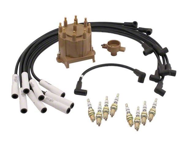 Everything you need to Super Tune Up your truck engine! The kit includes a high performance cap and rotor and a set of 8mm Extreme 9000 Spiral Core wires. This kit also includes the ACCEL classic copper core spark plugs to fire your engine up.