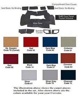 Construction and Appearance. Crafted from durable, fade-resistant cut-pile carpet material, this rear carpet is designed to withstand daily wear and maintain its color over time. The soft texture enhances interior comfort while also providing sound and heat insulation. Available in a range of OEM-matching colors, it ensures a factory-like restoration for your Corvette.