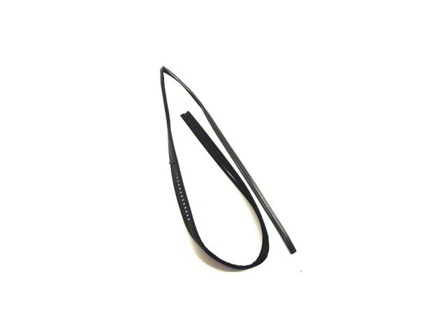 This glass run simply presses into the front, top and back section of the door channel. The installed clip secures the corner to the top of the division bar. This is sold as a single piece and fits the driver side.