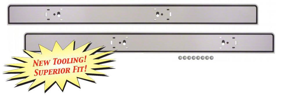 Reproduction door panel trim features correct contours and mounting holes. Brushed aluminum as original.