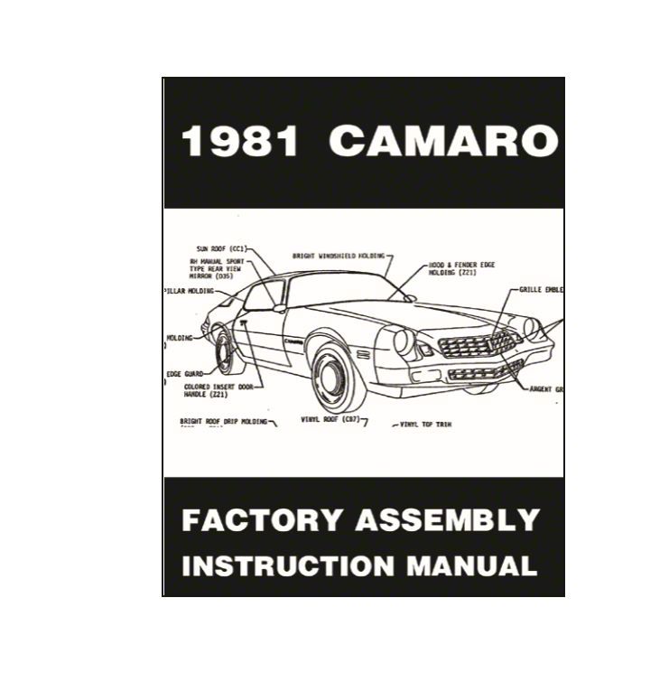 With a Camaro assembly manual , you won't have to deal with missing pages, fragile old paper, or lugging around volumes of heavy books. These versions of original GM literature are the best resource for working on your 1981 Camaro. This BOOK covers on vehicle systems such as brakes, fuel and suspension as well as wiring, interior, emblem placement and much more. Filled with exploded view illustrations, diagrams, wiring schematics and more, these Book assembly manuals are a must for any Camaro enthusiast's library. Contains assembly information on all 1981 Camaro models.