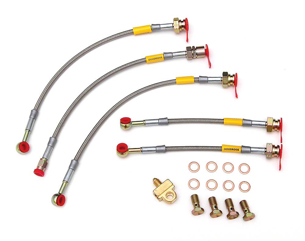 1982-1983 Camaro Goodridge Braided Disc Brake Hose Kit, Stainless Steel, With Rear Drum Brake