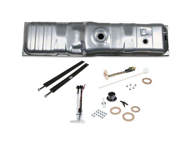 Sniper 19-157 will help you to complete your EFI swap with our new EFI Conversion Fuel Tanks. Each tank is a direct fit for your application-no modifications necessary. The kit includes the tank, a 400 lph fuel pump, internal baffling, and a fuel level sender. The tank is powder coated for corrosion resistance and great looks. These tank kits are a complete solution for your EFI project! Supports up to 550 EFI ( 60 PSI at 13.5 Volts / 10.4 AMP Draw) Size is: 56 x 14-1/8 x 11 NOTE:Using the GM design, these tanks will fit on either side of the truck.