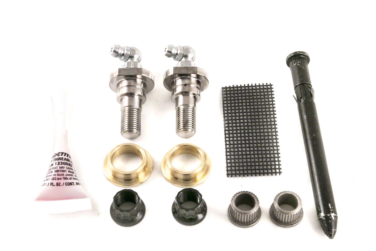 We use 1045 steel electroless nickle plated studs, precision CNC machined brass bushings, and ARP 12 Point 8740 Chromoly Nuts. One kit covers one door. Please purchase two kits for replacing both doors. Installation time is estimated around 2 hours.