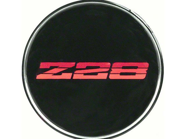 Camaro Z-28 model. This is the insert which was used with the 1982 Camaro Pace car. Manufactured from domed mylar with a clear polyester coating and a 3M adhesive backing. Features three shades of red for the Z-28 logo. 2-1/8" diameter.