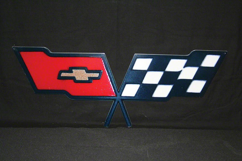 Classic Corvette Emblem Sign. The Corvette Metal Sign is a unique piece of art that replicates the iconic front or rear emblem of the 1982 Corvette C3. This sign is perfect for car enthusiasts looking to display their passion as a statement piece in their home or garage. It can stand independently, lean against a wall, or hang freely, making it versatile and easy to incorporate into any space.