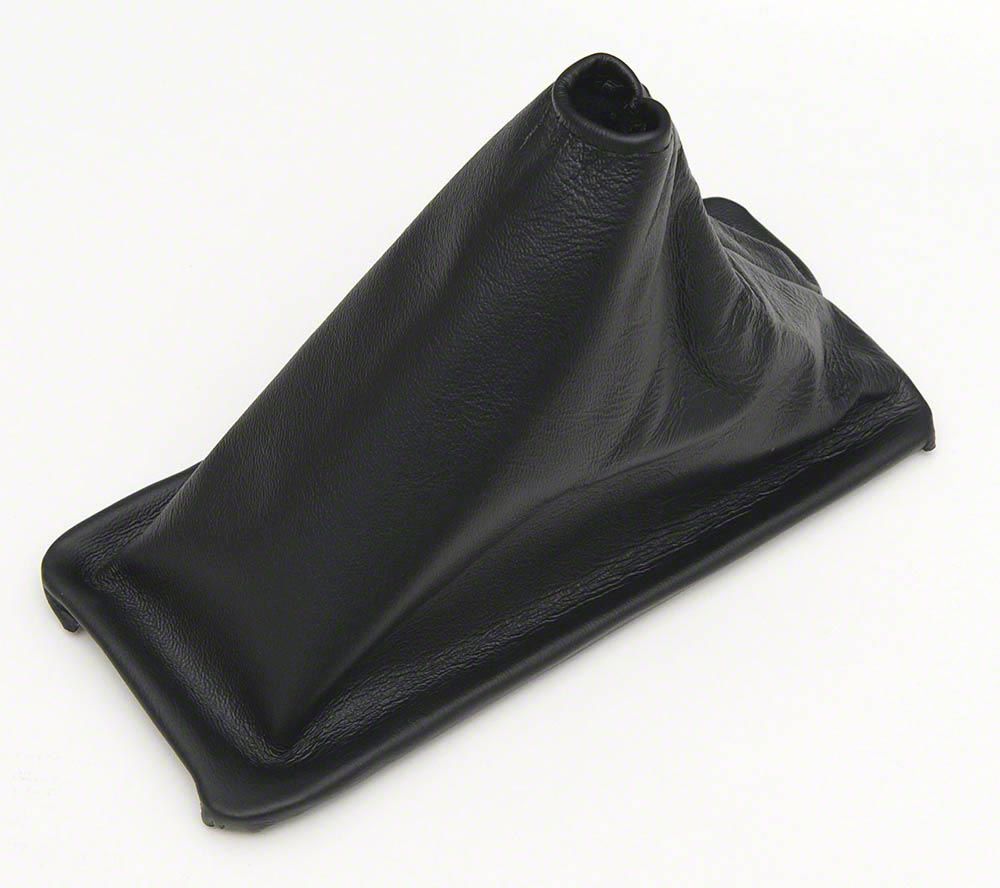 Construction and Appearance. Constructed using modern manufacturing techniques, this shifter boot is designed for a perfect fit. It is crafted from black leather, providing an OE-like finish that complements the vehicle's interior. The product measures 8.75 inches in length, with a frame mounting hole pattern of 3 x 8 inches.