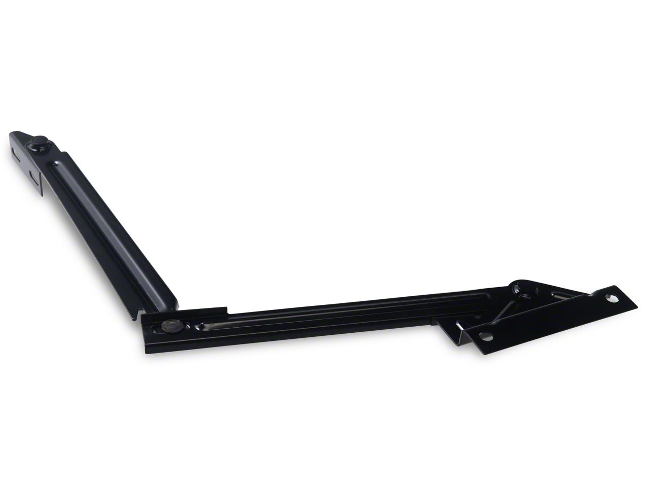 Construction and Appearance. Featuring a matte black finish, this hood support is built to stock specifications, ensuring it matches the original part in terms of quality and fit. The high-quality construction guarantees durability and long-lasting performance, making it a reliable choice for restoring your classic Corvette.