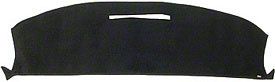 Construction and Appearance. This dash mat is made from tough, dense polyester fabric, known for its durability and easy maintenance. The mat features felt-bound edges for a clean, finished look and comes in a sleek black color that complements any interior.