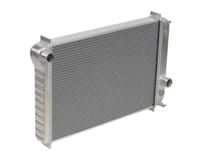GM’s 1984-89 C4 radiator has a single row of cooling tubes and plastic end tanks that are epoxied in place. This direct replacement radiator features 2 rows of cooling for as much as 100% additional cooling surface and it has press formed aluminum end tanks that are tig welded to the core for a permanent seal. The core of this aluminum radiator is furnace brazed which provides a leak-free core without the use of epoxy.