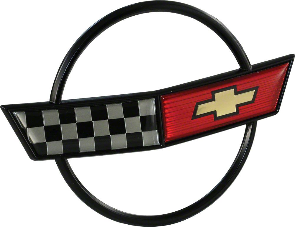 Front Hood Topside Emblem. This emblem features a Corvette Cross-Flag-inspired design and is a GM-licensed product, ensuring authenticity and high quality. It is designed to replace old or worn-out factory emblems, providing a reliable OEM-quality replacement that seamlessly integrates with existing factory parts.