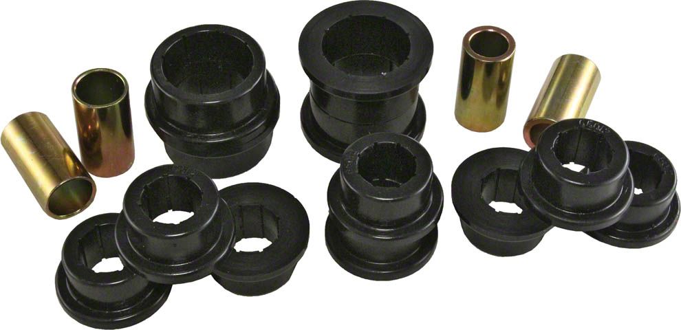 Construction and Appearance. Crafted from high-quality polyurethane, these bushings offer superior durability compared to traditional rubber. Their matte black finish provides a clean, understated look while resisting wear, cracking, and environmental damage. Built to OE-compatible standards, they replicate factory function while delivering modern improvements.