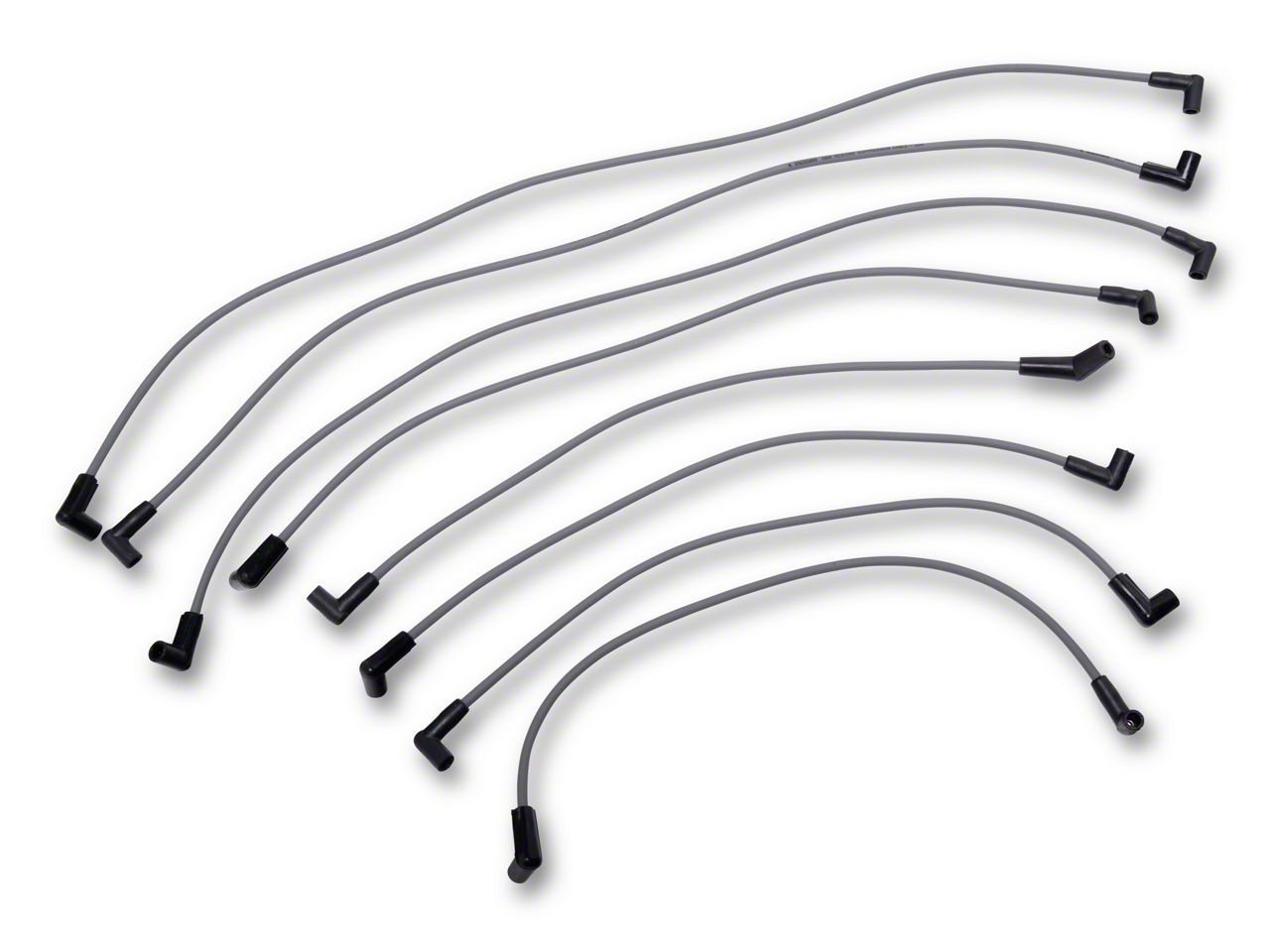 High-Performance Spark Plug Wires Set. The Spark Plug Wires Set is designed for 1985-1991 Corvette C1 models, excluding ZR1 models, offering a reliable and high-quality replacement for your vehicle's ignition system. Featuring a matte black and light gray finish, these wires are crafted from Packard Wire with Kevlar wrapped silicone insulation, ensuring durability and optimal performance. Built with the correct specifications, boots, and terminals, this set guarantees precise fit and functionality.