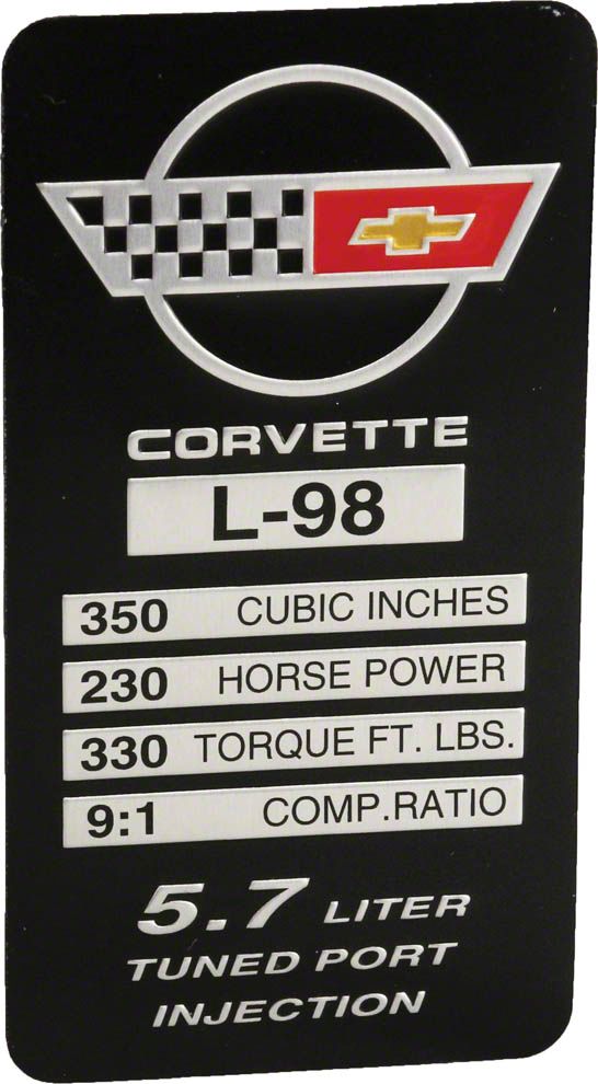 Eckler's no longer carries the 1985 Corvette Console Performance Specifications Plate L98 (Sports Coupe).