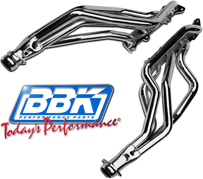 These direct fit, full-length headers from BBK will help your Mustang produce extra horsepower. Constructed from heavy 14-gauge, mandrel-bent tubing with 3/8 in. thick die-stamped flanges, these headers come in your choice of chrome or ceramic coated finishes. Gaskets and mounting hardware are included. Unless otherwise noted, these headers are designed to fit the vehicle as it came from the manufacturer. This includes components like cylinder heads, chassis, steering, motor mounts, body mounts, and bushings, etc. If your vehicle is using aftermarket components, parts from other applications, or custom altered parts, then it is the installer's responsibility to verify fitment. Proudly made in the USA! For all of your Fox-body Mustang performance and restoration needs, you