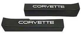 Construction and Appearance. Featuring a black finish with bold white "Corvette" lettering, these sill protectors enhance the aesthetic appeal of your Corvette. The durable material is resistant to scratches and scuffs, keeping your door sills looking pristine and well-maintained.