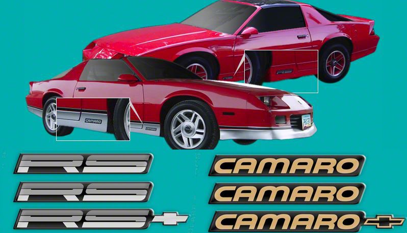 1988 1989 1990 Base Camaro Sport Coupe RS Rally Sport Third Generation by Chevrolet General Motors had many decals, emblems and stripes kit. Fast and sleek this GM Restoration Parts decal & emblem kit is produced the highest OEM standards. The stripes are a breeze to apply.