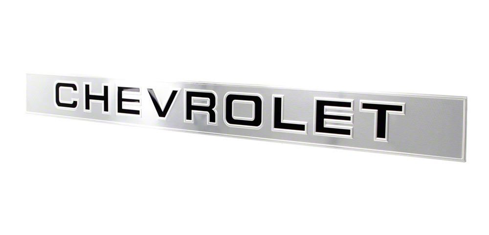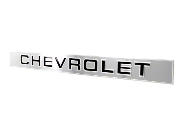 Reproduction Chevrolet tailgate band for 88-98 Chevrolet C/K OBS Fleetside Pickup. Can also be installed on 92-94 Blazer, 95-99 Tahoe & 92-99 Suburban with fold-down tailgate. Made like OE. Stamped from high quality aluminum. Brushed exterior finish with black painted Chevrolet script letters. Designed for quick and easy peel and stick installation.