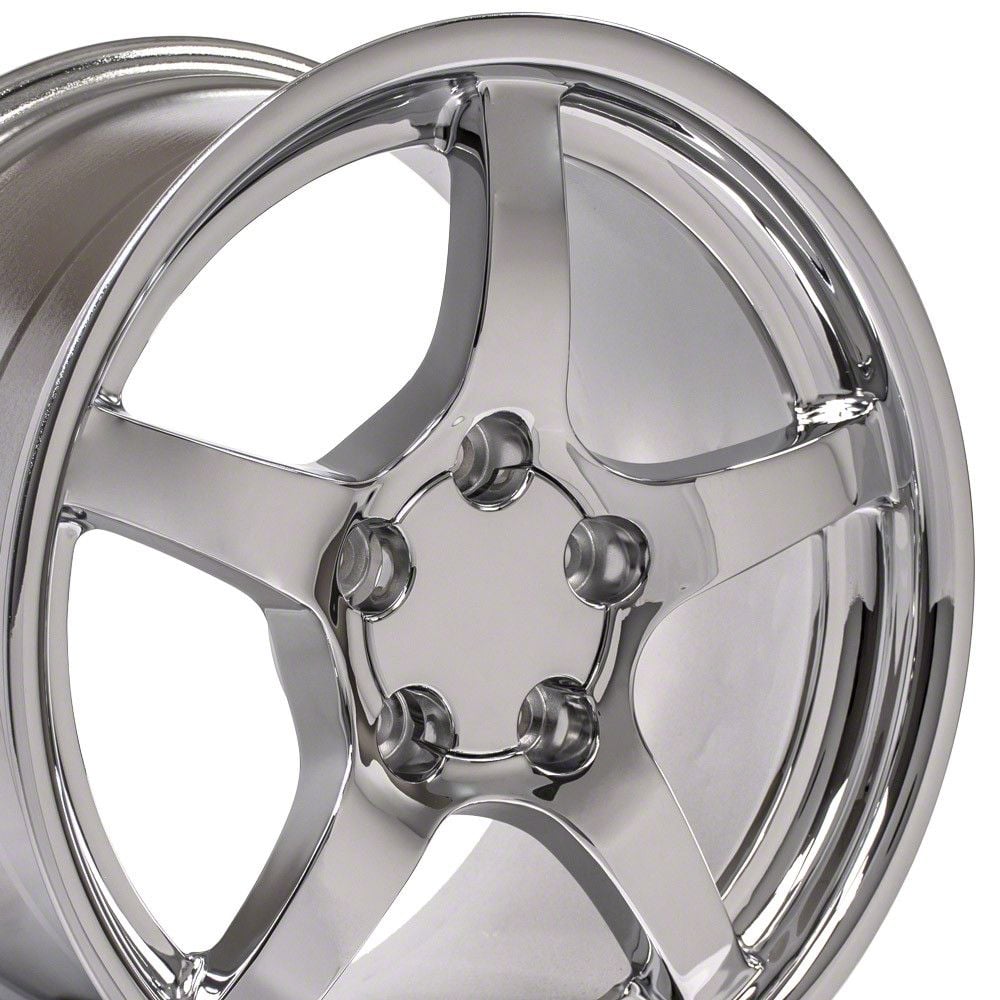 These CV05 Corvette replica wheels are 18x9.5 deep dish Chrome Chevy rims (C5 Rim Style) designed to fit the Chevy Corvette and other compatible vehicles. Please check our fitment tab for specific year-make-model applications and will-not-fit exceptions before ordering.