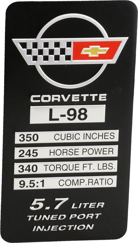 1988L (C4, C5) L98/245hp Console Performance Specifications Plate